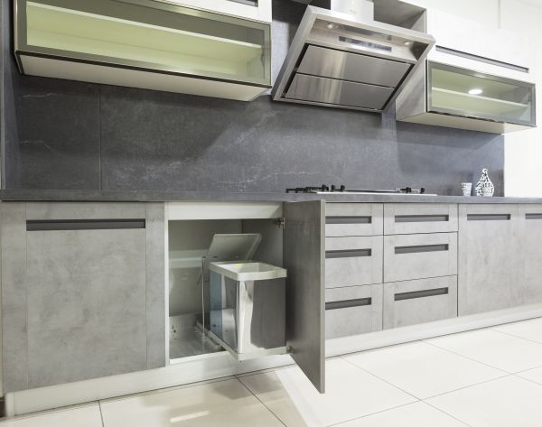 Aventos Açılım Sistemli Highgloss Kapaklı Gri Mutfak Dolabı Düşey Davlumbaz Örneği